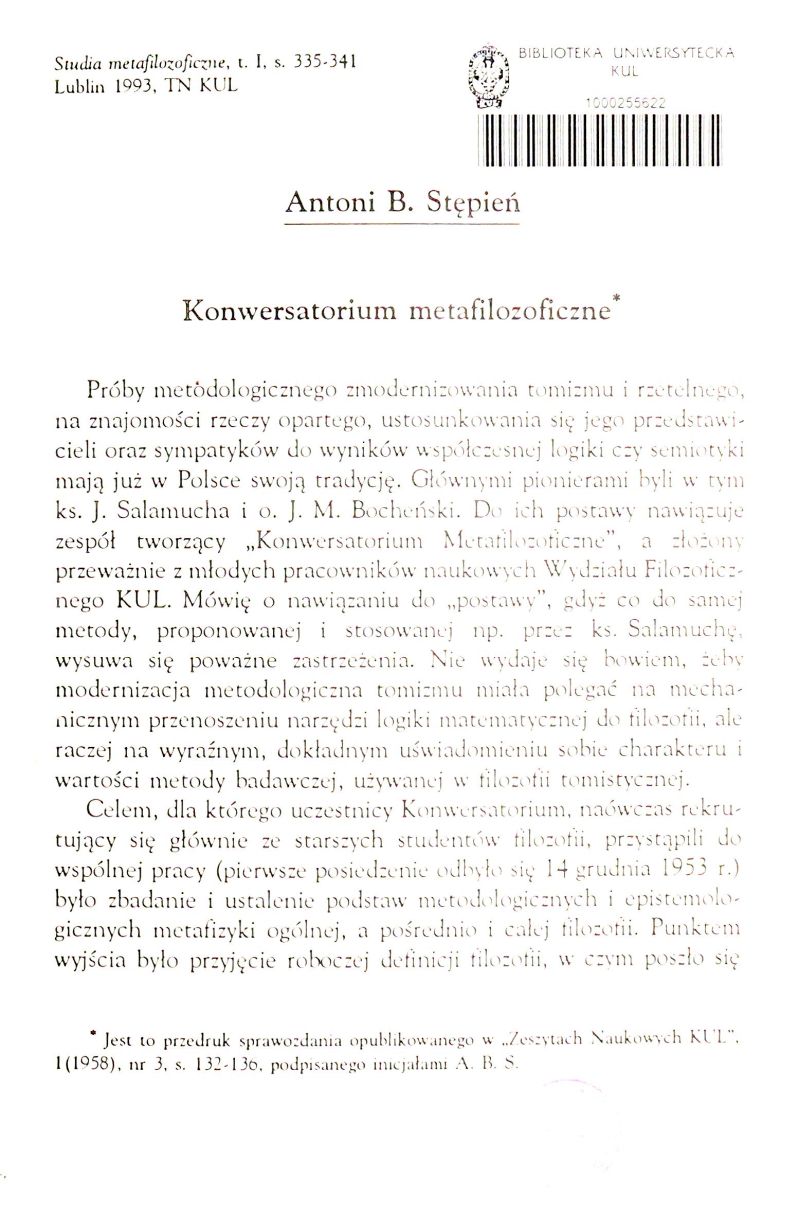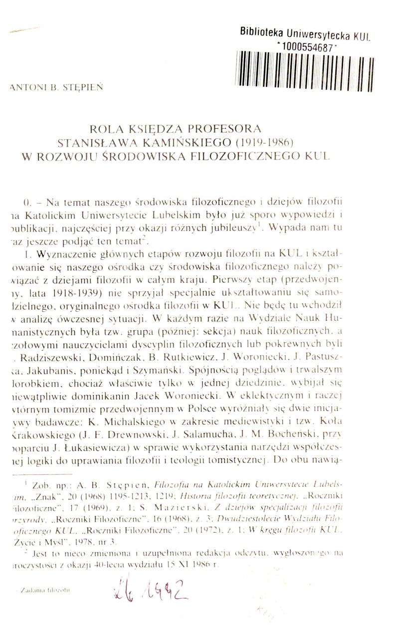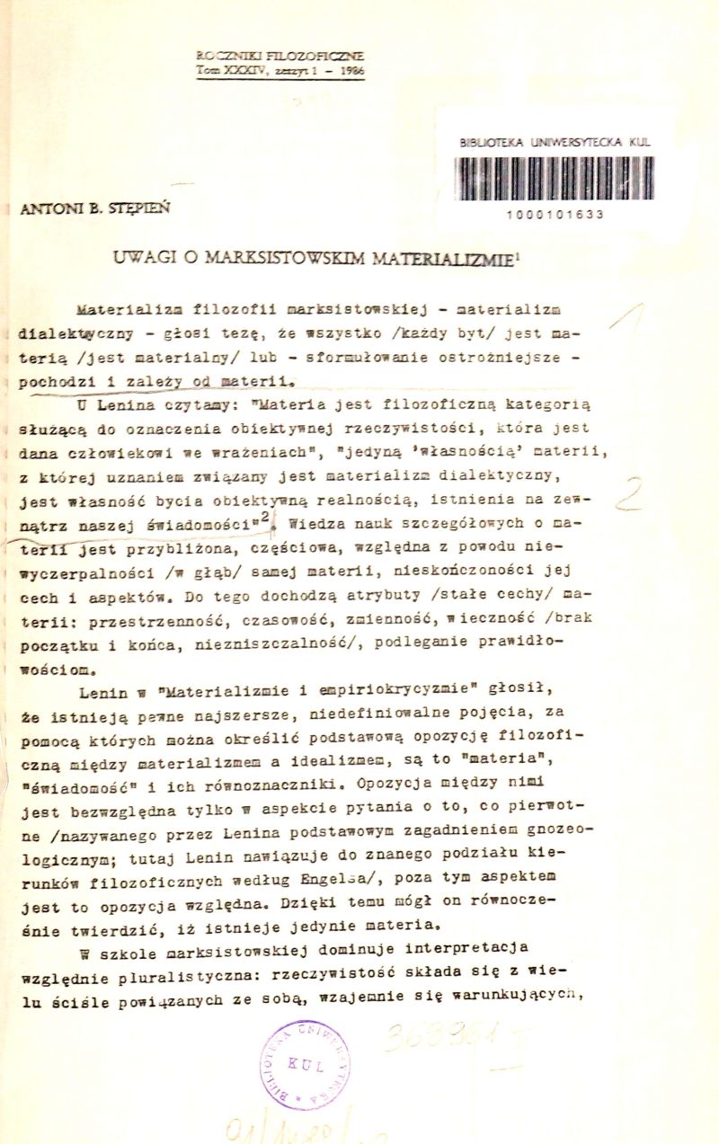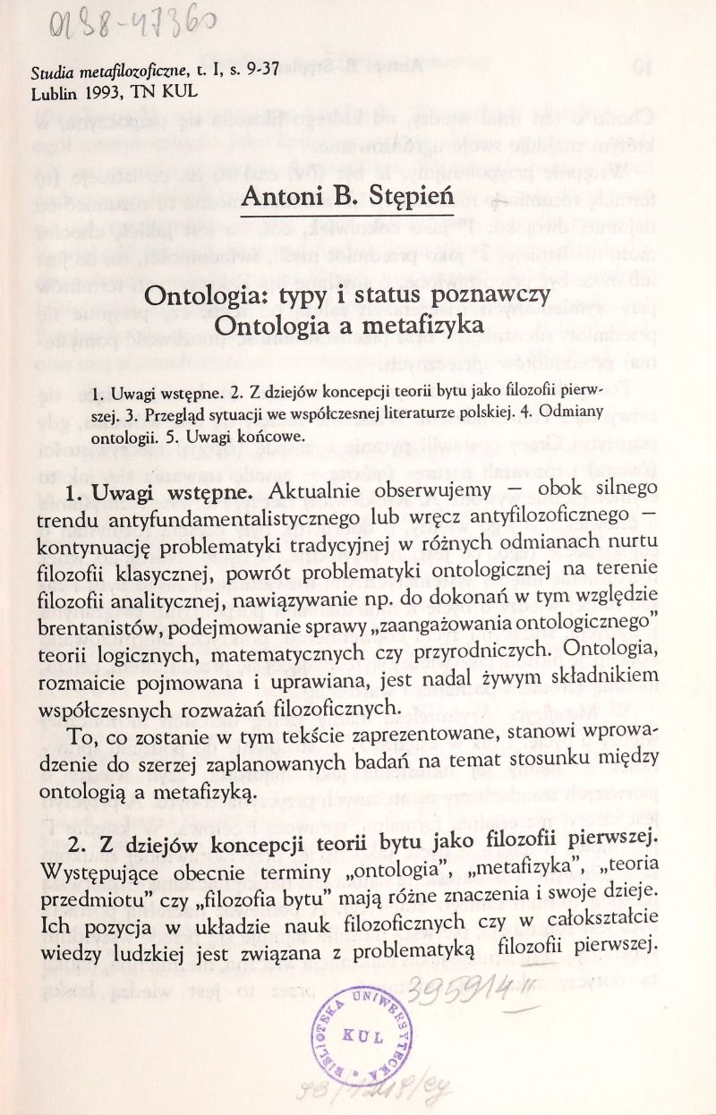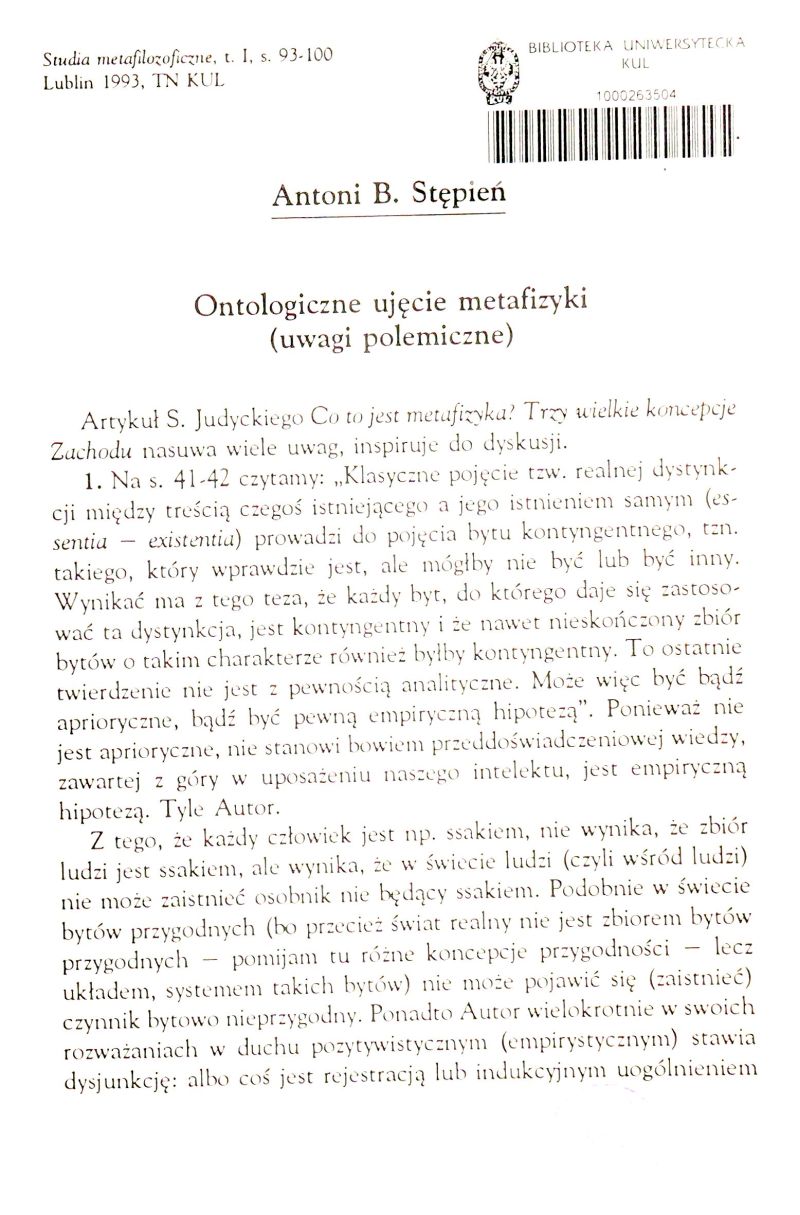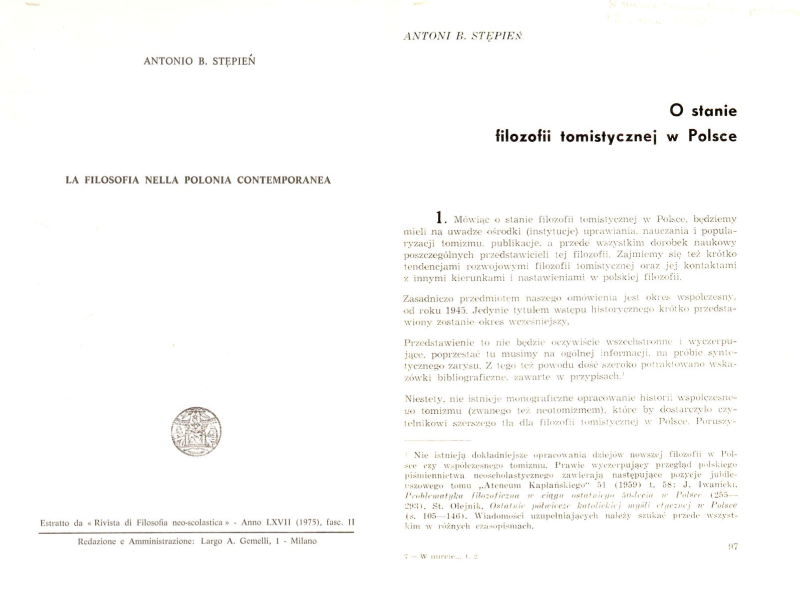 M. Dadia: Bibliografia prac Antoniego B. Stępnia. "Roczniki Filozoficzne" 2002, T.1, z.1, s.25-43.