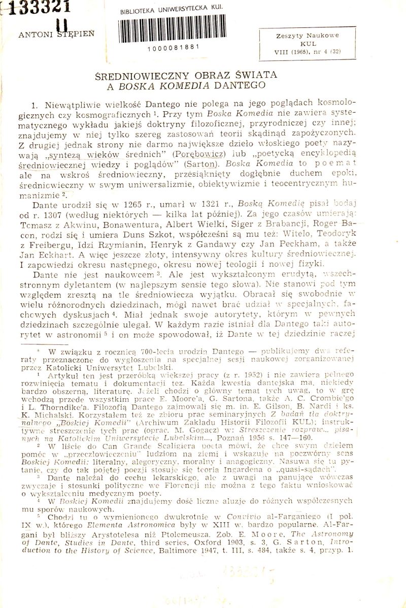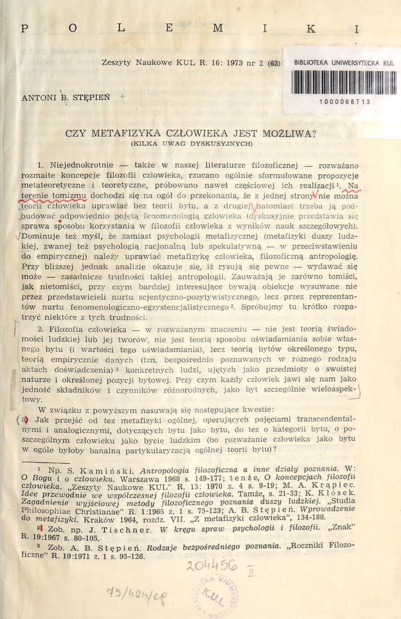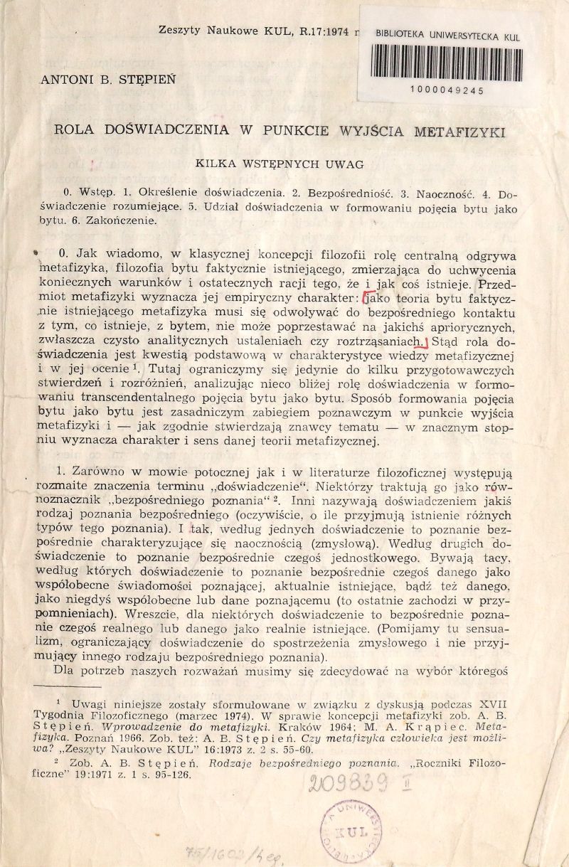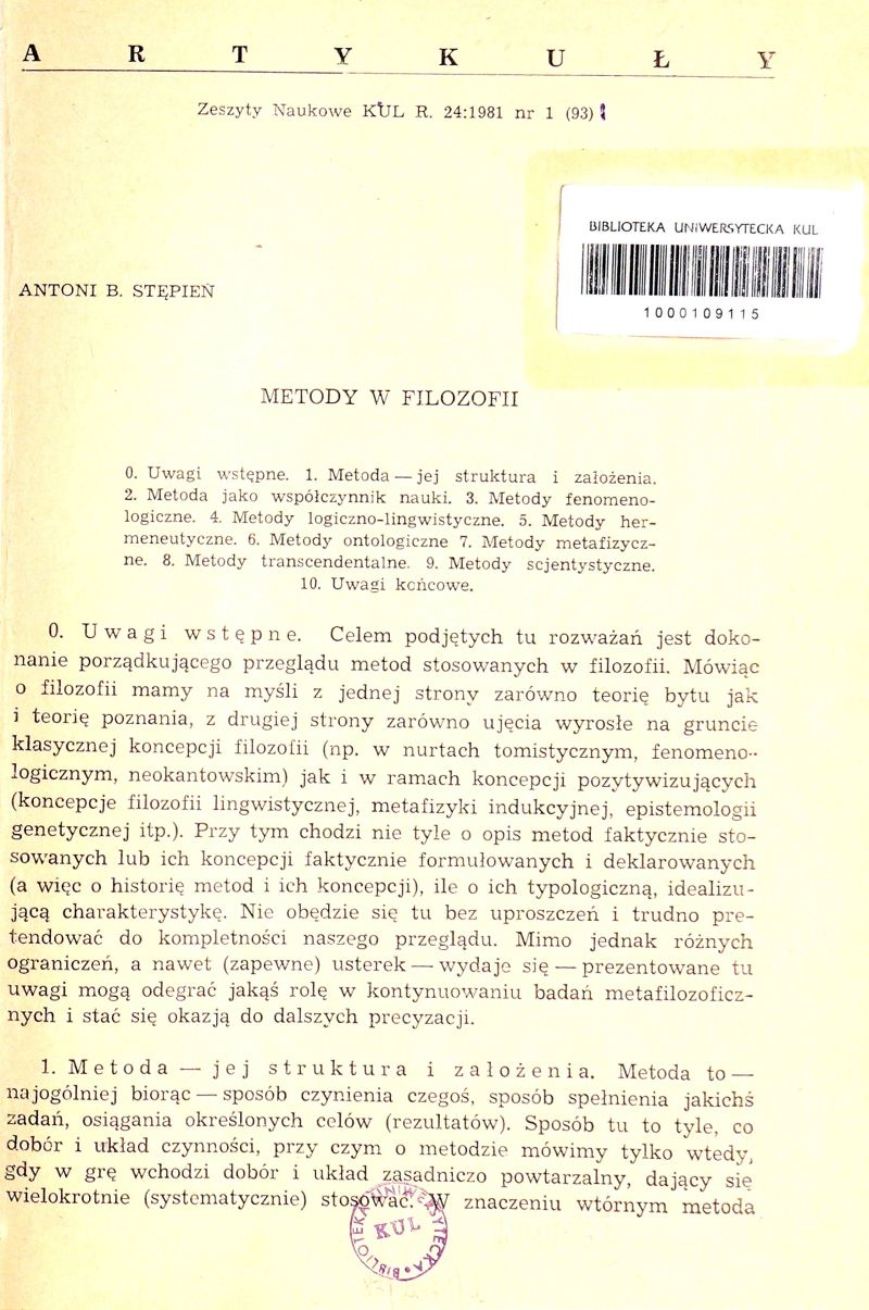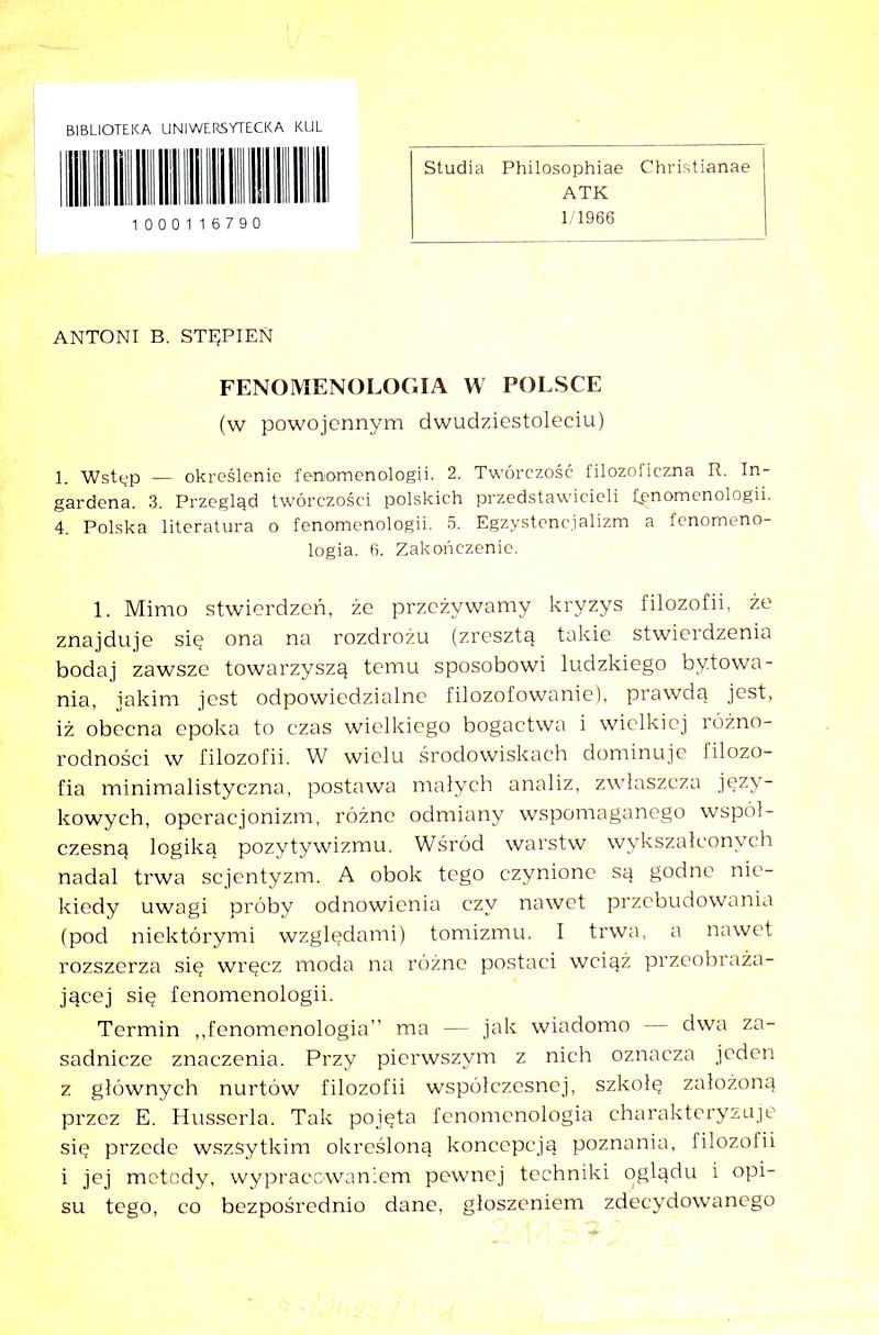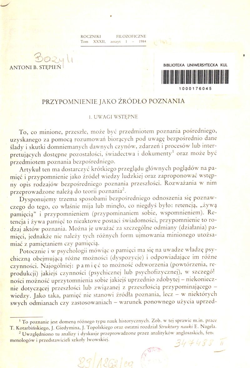 M. Dadia: Bibliografia prac Antoniego B. Stępnia. "Roczniki Filozoficzne" 2002, T.1, z.1, s.25-43.